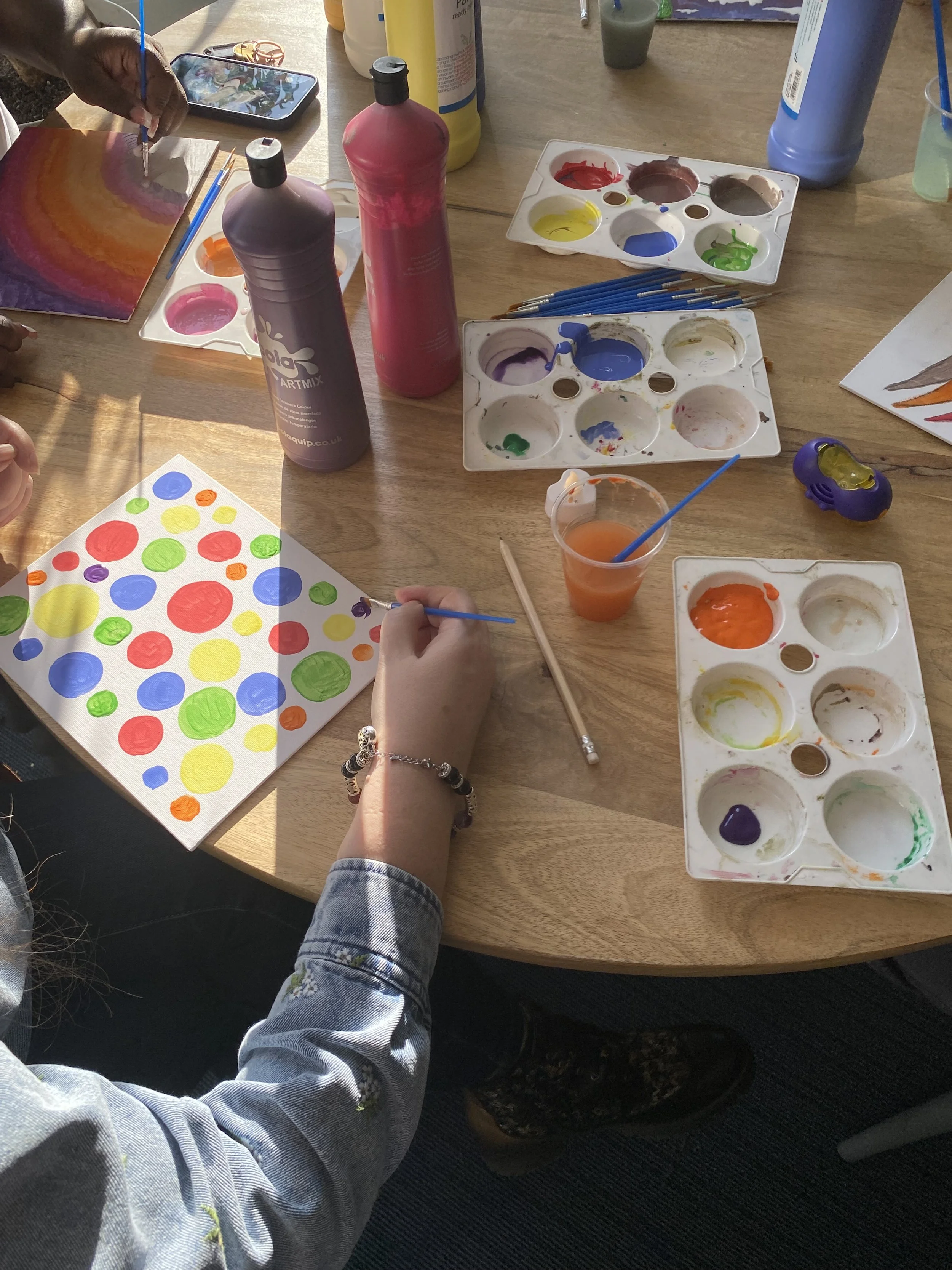 "I have experienced Eliza's art classes twice now on a one-to-one session. I'm a mature lady and really didn't know what to expect. I was actually quite blown away by it. She helped me calm myself down because I've been going through a very stressful period in my life. She meditated with me and played music and then we did really reflective art based on the things I've been worrying about. I couldn't recommend it enough and I think this person is a healer and quite extraordinary and I look forward to seeing her again"